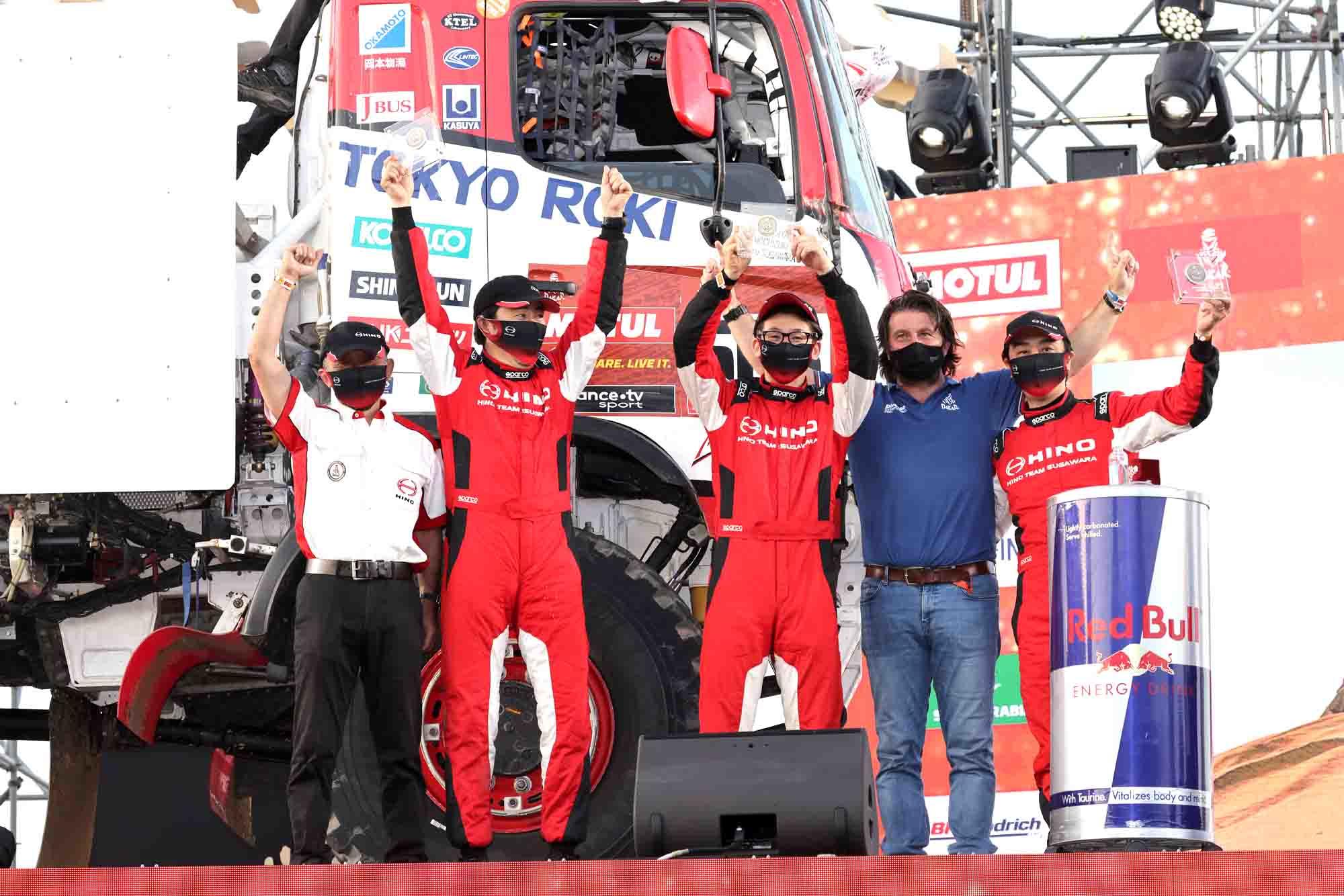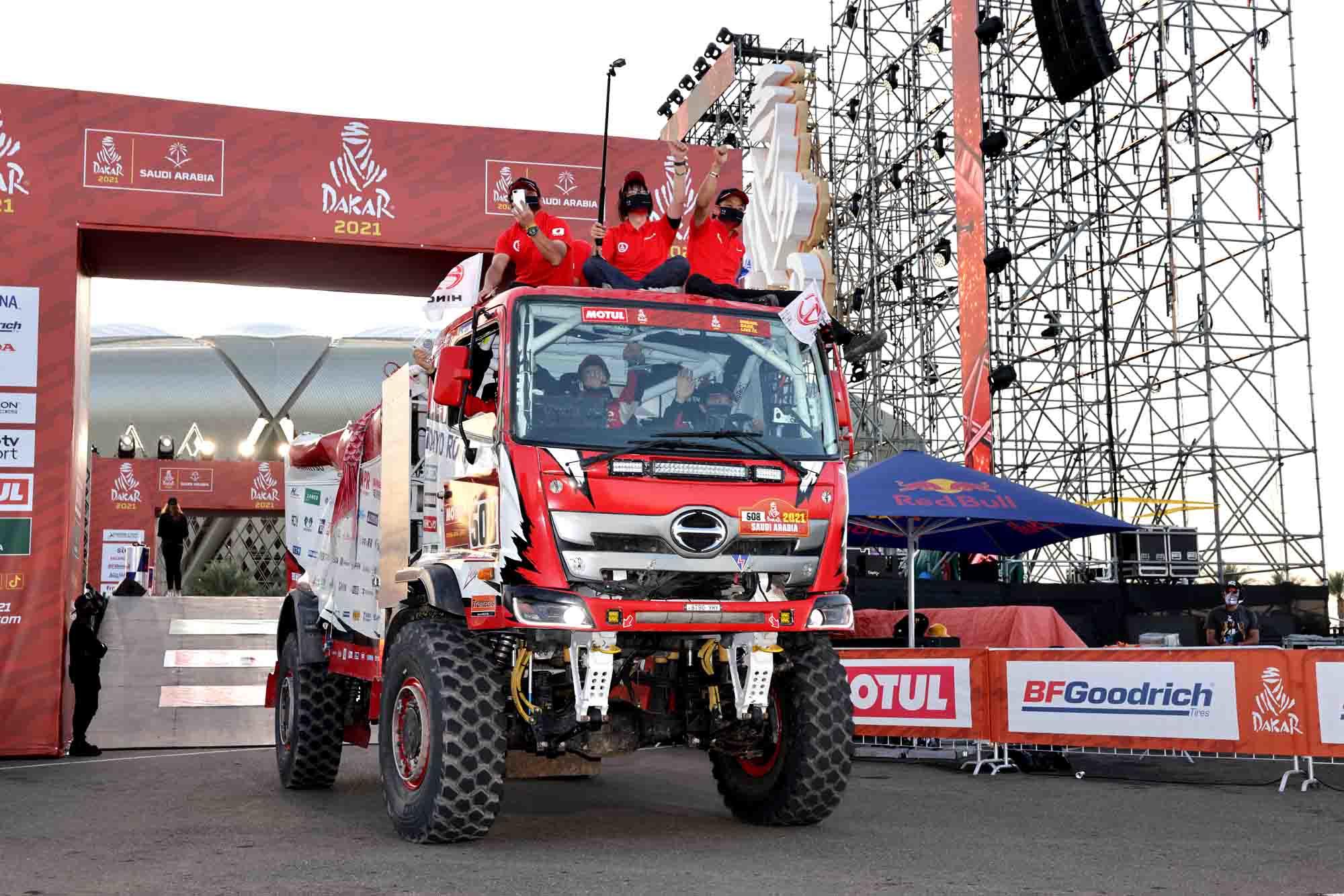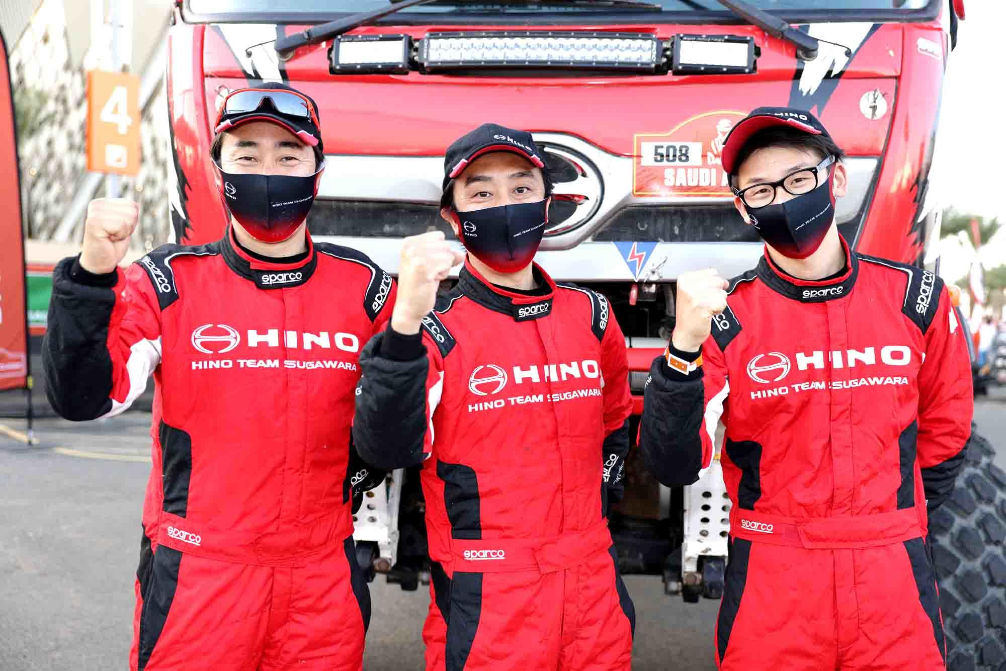 On Jan 15, contestants raced the final SS of Dakar 2021 set between Yanbu en route to Jeddah on the final stage of the event, and then took a liaison to reach the finish line in Jeddah. Crewed by Teruhito Sugawara, Hirokazu Somemiya, and Yuji Mochizuki, the HINO500 Series truck that HINO TEAM SUGAWARA entered in the Truck Division finished the final SS (timed section) of the event in the outskirts of Yanbu at 14th place overall in the Division.