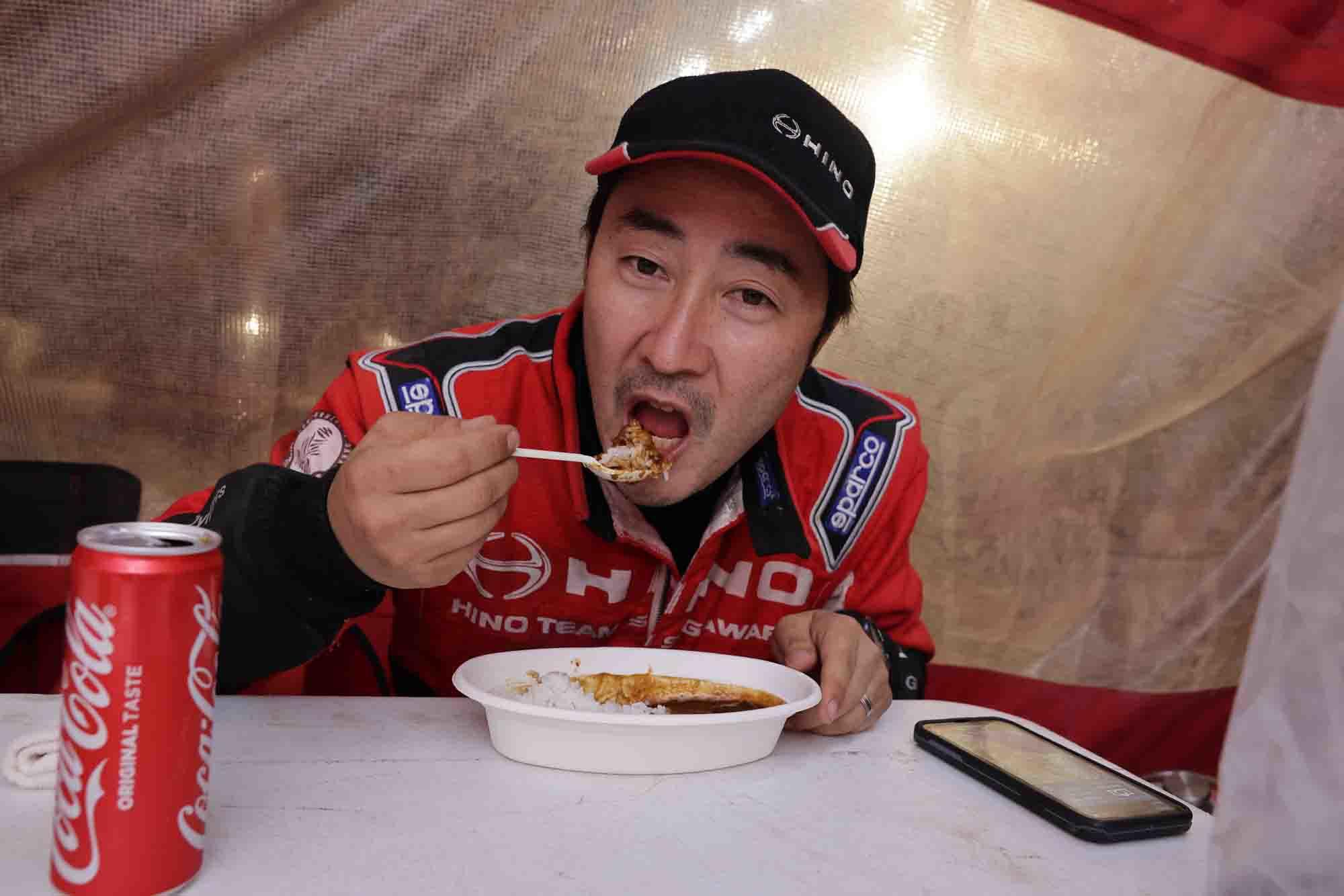 Hirokazu Somemiya enjoys his curry over rice for supper