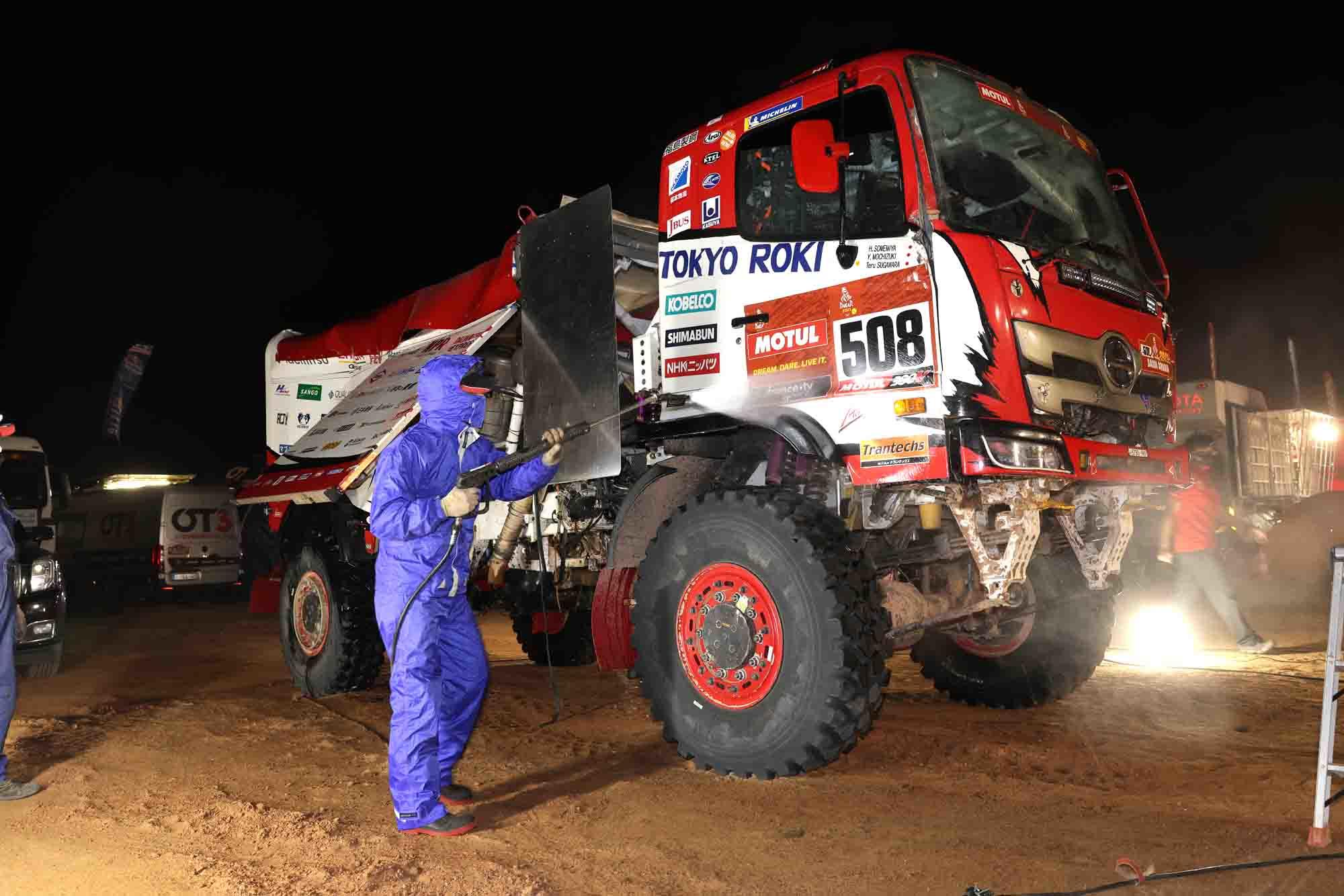 The HINO500 Series crew maintained their composure taking on this SS. While they punctured their front-right tire in a wadi, they were back up and running in about 10 minutes to continue the rest of the day error-free and wedge their way into the leading group of larger trucks for a 10th place finish overall. The SS was followed by a 6-km liaison that took crews back to the bivouac in Neom. After a good wash down, the truck was inspected and serviced by the team’s mechanics to prepare for next day’s stage. On Jan 13, contestants are scheduled to head out from Neom on the Red Sea coast towards the interior on a 582-km stage which will include a 342-km SS en route to AlUla.
